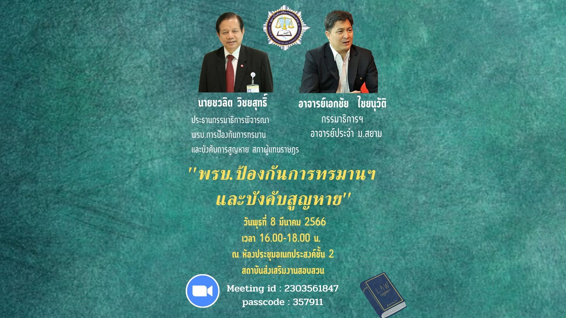 บรรยายพิเศษ เรื่อง พรบ.ป้องกันการทรมานฯ และบังคับสูญหาย โดย นายชวลิต วิชยสุทธิ์ และอาจารย์เอกชัย ไชยนุวัติ