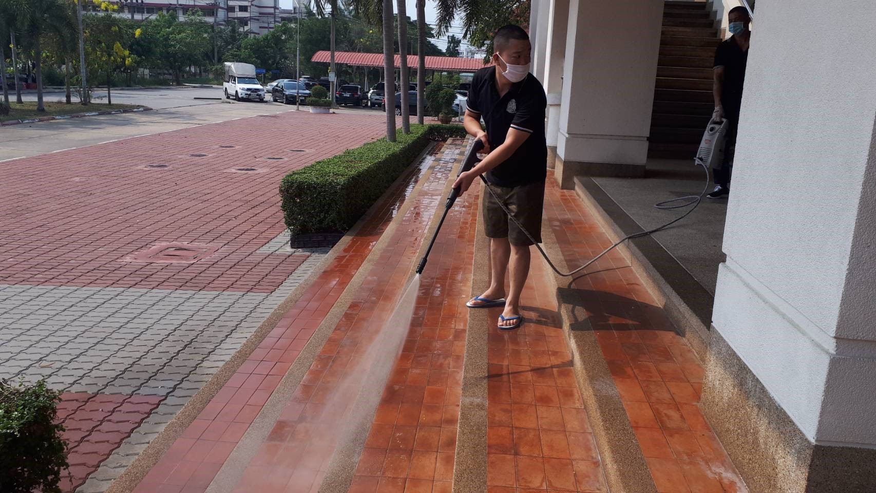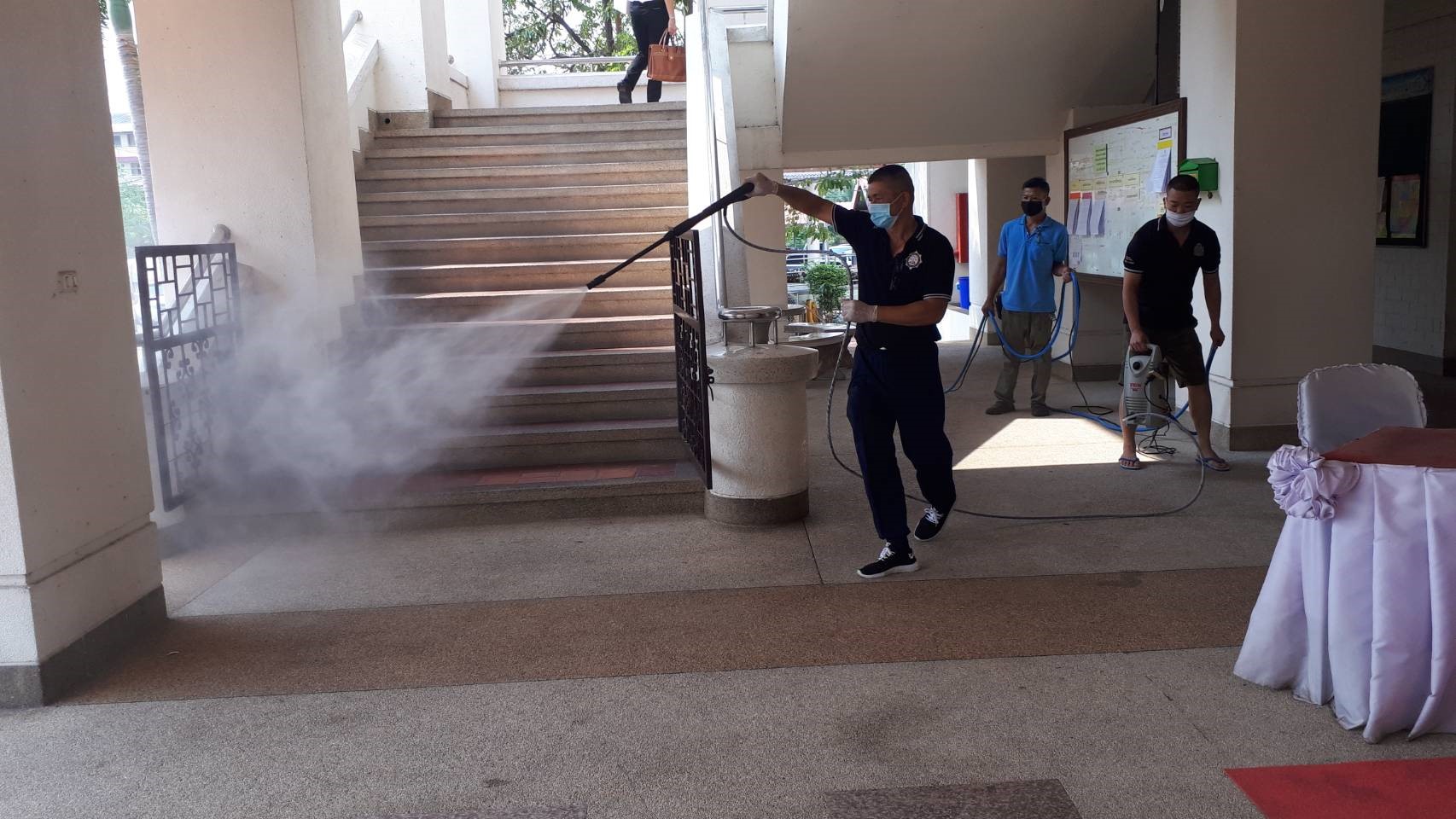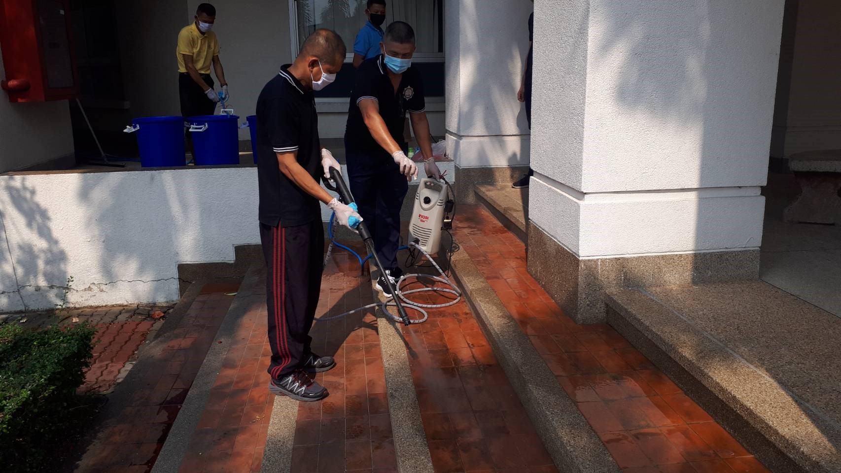 วันอังคารที่ 17 มีนาคม 2563 ผู้บังคับบัญชาพร้อมด้วยข้าราชการตำรวจ สถาบันส่งเสริมงานสอบสวน ได้ร่วมกันทำความสะอาดโดยฉีดน้ำยาฆ่าเชื้อโรคเพื่อป้องกันเชื้อไวรัส COVID-19 ในสถานที่ทำงานและบริเวณโดยรอบ