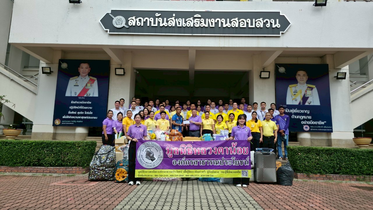 วันพฤหัสบดีที่ 24 ก.ค.68 พล.ต.ต.ชูศักดิ์ ขนาดนิด ผบก.สบส. นำข้าราชการตำรวจในสังกัด สบส. พร้อมผู้เข้ารับการฝึกอบรมหลักสูตรการพัฒนาผู้ทำหน้าที่นิติกรฯ ระดับ รอง สว. รุ่นที่ 10 และ หลักสูตร ปสส.14 (กอต.(สอบสวน)) ร่วมส่งมอบสิ่งของบริจาคตาม " โครงการตำรวจแบ่งปันน้ำใจให้ชุมชน " ให้แก่มูลนิธิหลวงตาน้อยเพื่อใช้ประโยชน์ต่อไป